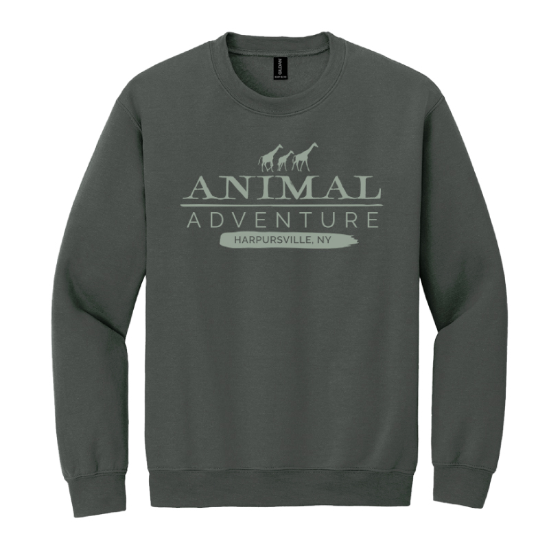 This crewneck features three giraffes wandering softly across the words “Animal Adventure Park & Preserve,” as if the fabric itself were a quiet savannah beneath their feet. The Heavy Blend collection is now made with finer yarns and new MVS Air spinning technology, which improves the fabric by reducing pilling, & enhancing durability.