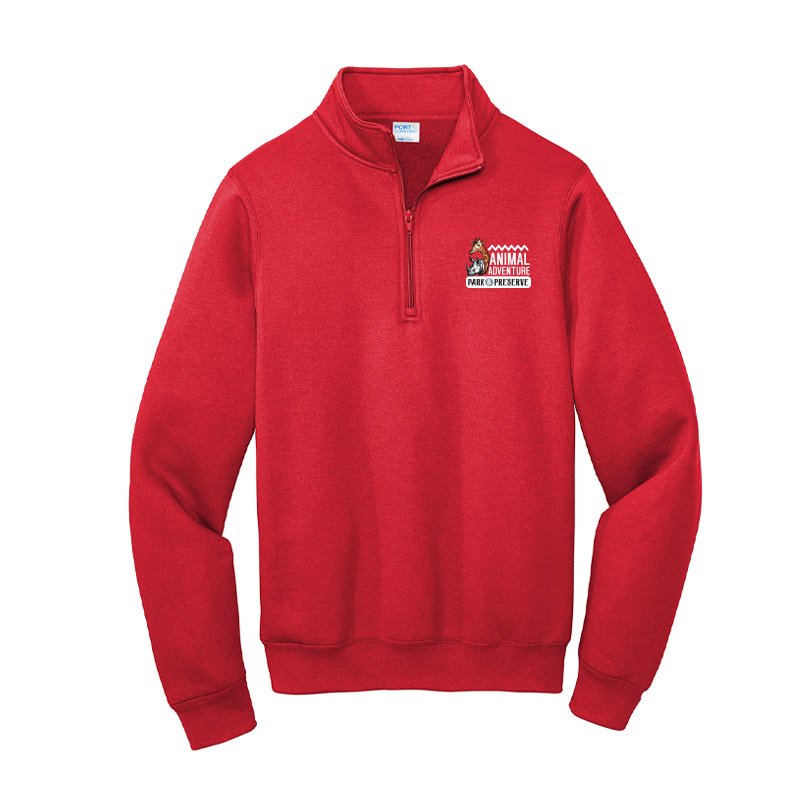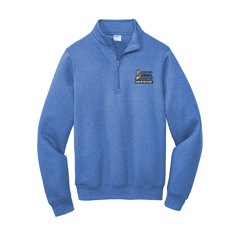 Our 1/4 zip pullover is made of midweight sweatshirt material and features the Animal Adventure logo embroidered on the left chest.