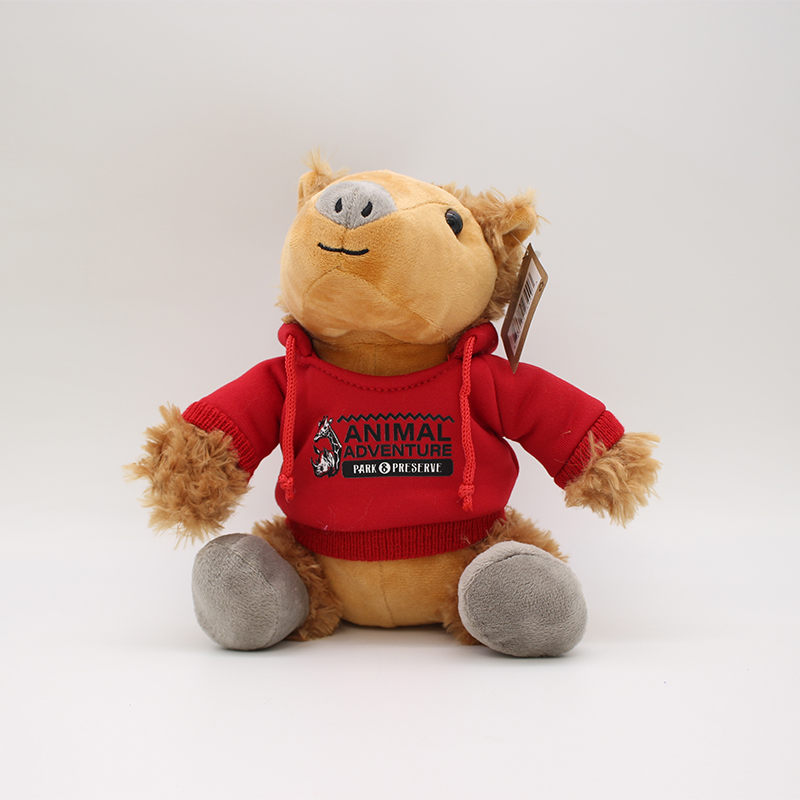 You can't take home the Animal Adventure Park inhabitants, but we've got the next best thing! These plushies are soft, huggable, and can sit up on their own, making them perfect either as cuddle companies or decorative pieces. Plus, they come dressed in a stylish hoodie decorated with this year's unique Animal Adventure Park & Preserve graphic! For 2025, we have a crisp black and white design featuring the iconic AAP giraffe and rhino. Select your animal from the dropdown - choose from giraffe, rhino, penguin, snow leopard, lion, tiger, cheetah, sloth, or capybara! Hoodie colors are random.