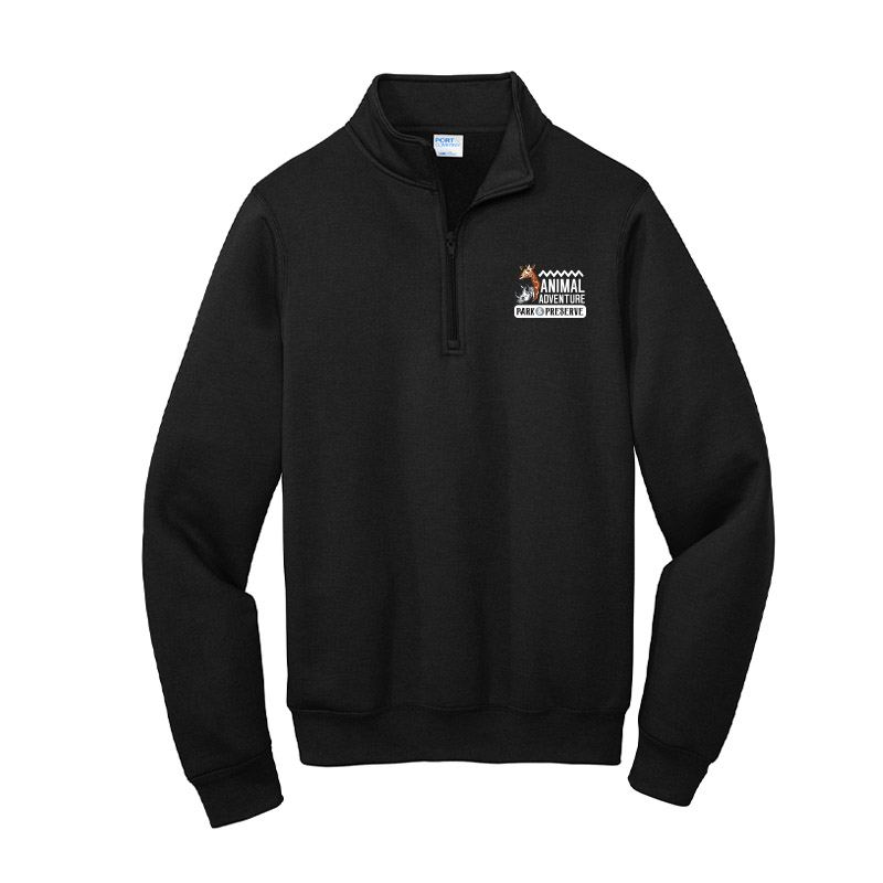 Our 1/4 zip pullover is made of midweight sweatshirt material and features the Animal Adventure logo embroidered on the left chest.