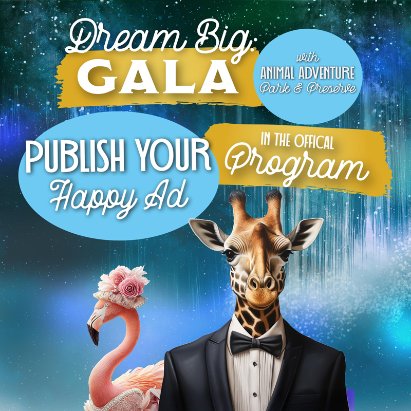 Show your support of Animal Adventure, The Gala, and Season 14 with your published Happy Ad in the Dream Big Gala Program!