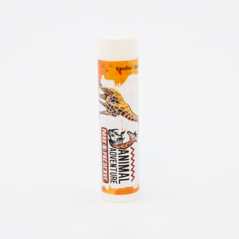 The vanilla lip balm, wrapped in a tiny safari of two gentle giraffes and a proud rhino, feels like carrying a sun-kissed savanna in your pocket. Each swipe is a whisper from the Animal Adventure Park & Preserve, softening your lips with the warmth of wild wanderlust. Moisturizing SPF 15+ reef-safe lip balm. Strong broad-spectrum protection from both UVA / UVB rays to help protect you from sore, dry, cracked lips, lip sunburn, and lip damage. This lip balm uses avobenzone, homosalate, octislate, octocrylene for sun care protection. Our reef-safe lip balm is 100% Oxybenzone free, Octinoxate free to safely use around sensitive marine life including coral reefs. An excellent giveaway for spas, resorts, and any outdoor events. Includes full-color process decal - Vanilla flavored.
