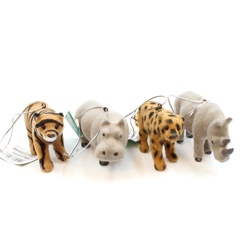 Bring the wild beauty of the jungle, to your holiday tree with an assortment of jungle animal ornaments. Featuring a variety of vibrant and exotic animals, including a leopard, hippo, tiger and rhino, these ornaments add an adventurous touch to your holiday decor. Whether you're decorating for the holidays or just want to add some jungle flair, these fun and playful ornaments are perfect for animal lovers, nature enthusiasts, or anyone looking to create a unique and lively theme for their Christmas tree.